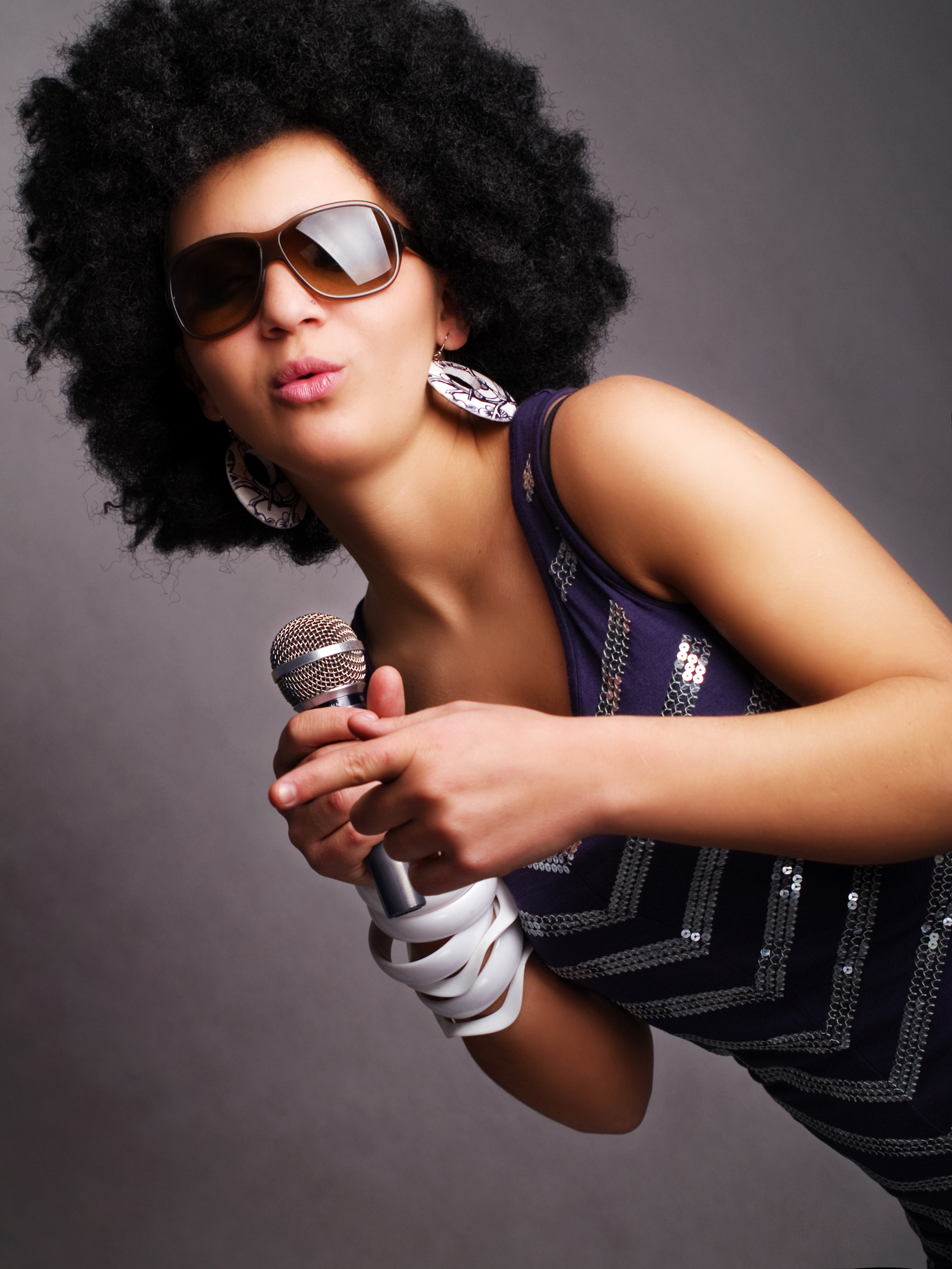 afro singer holding microphone